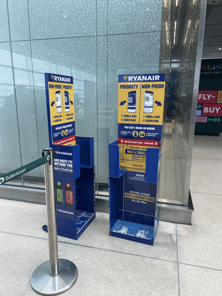 ライアンエアーの荷物規定はこちら。小型荷物/Small Bag(40cm × 30cm × 20cm)は無料で、それ以外はプラスで料金がかかる仕組み。
