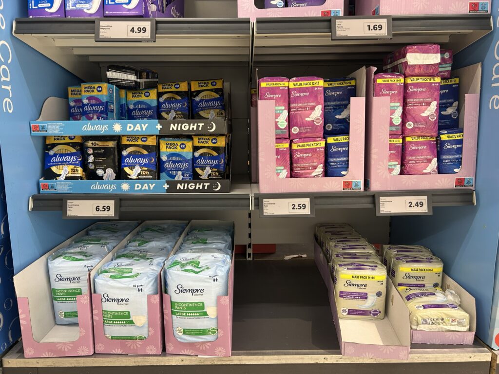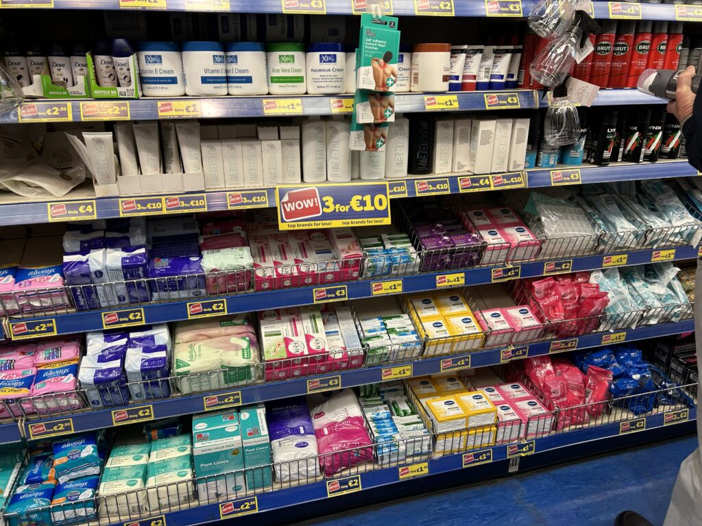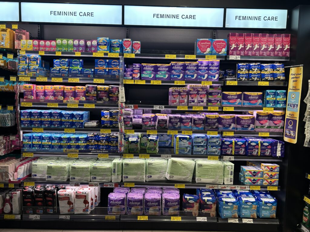日本と同じく、アイルランドでもスーパー、ドラッグストアなど、生理用品はどこでも手に入れることができる。円換算すると高く感じるけど、プライベートブランドはお手頃価格で、使い心地も(日本と比較しなければ)問題ない。