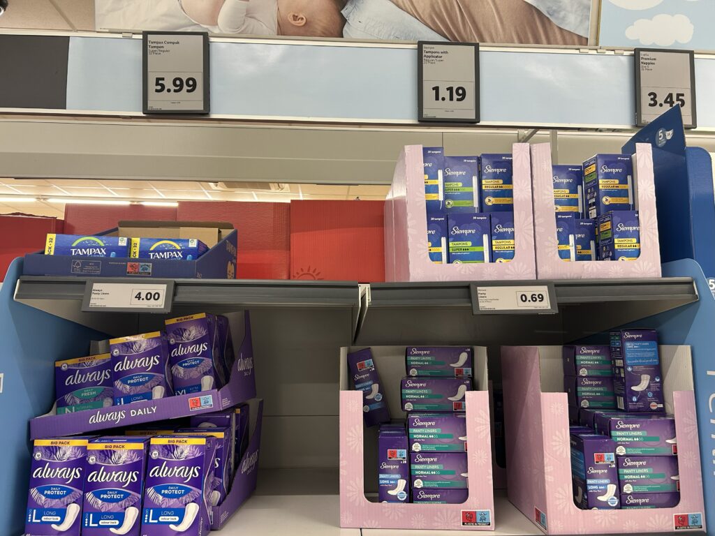 各お店の生理用品も撮ってみたので、参考までに!多くのお店が、alwaysとプライベートブランドを両方取り扱ってる感じ。