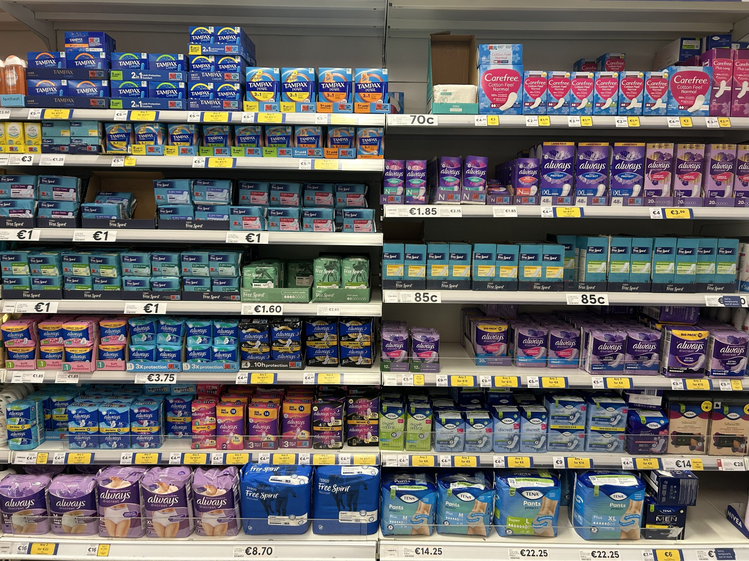 テスコもalwaysとプライベートブランド!プライベートブランドは€1くらい。